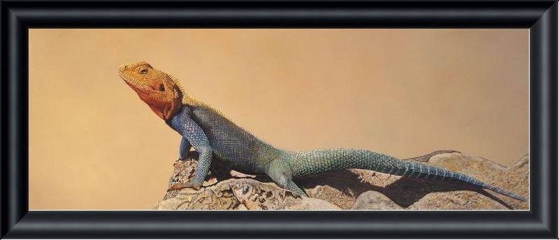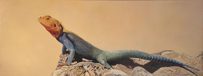 Het is zo levensecht geschilderd. dat je denkt dat de hagedis elk moment zal wegspringen...
