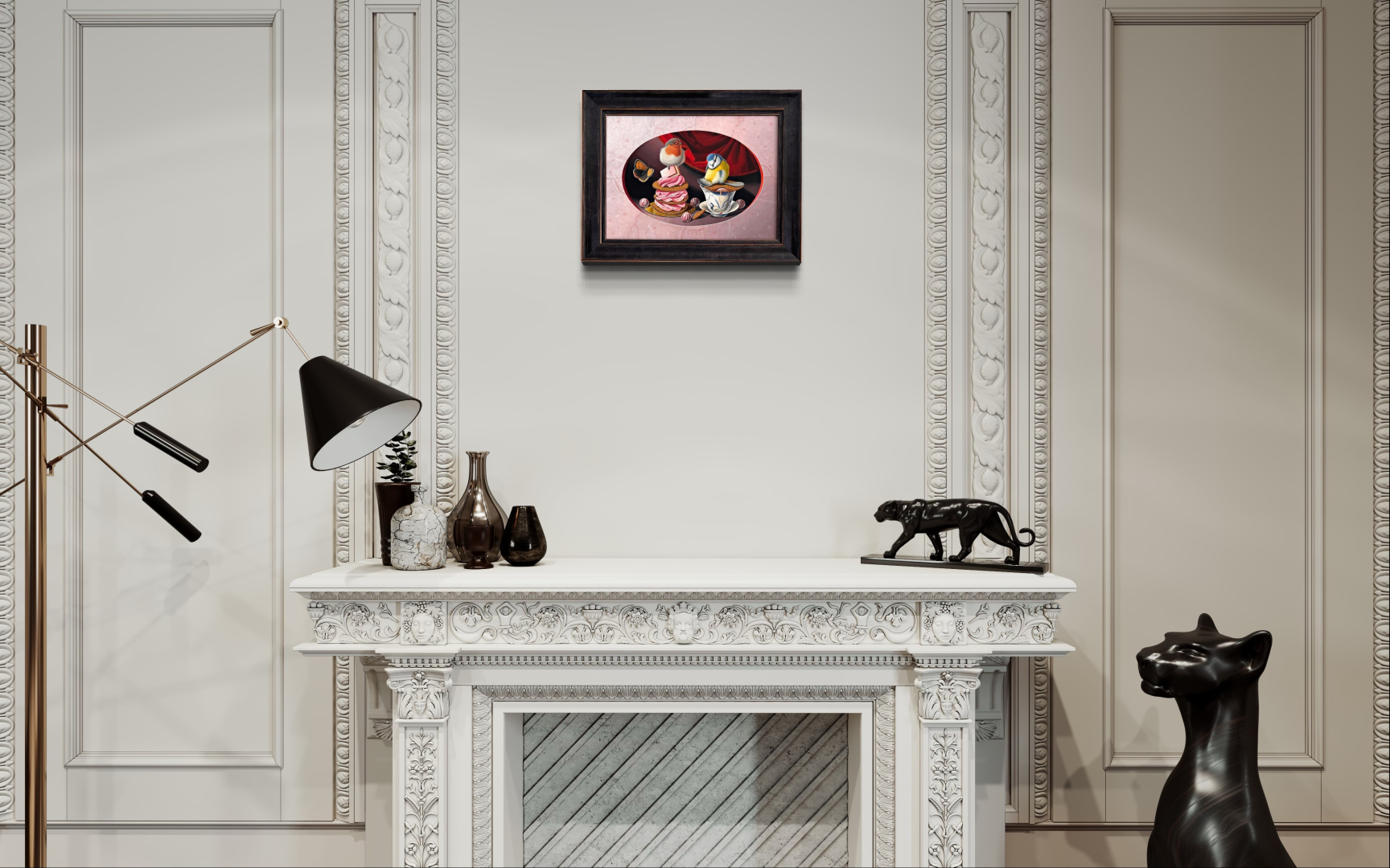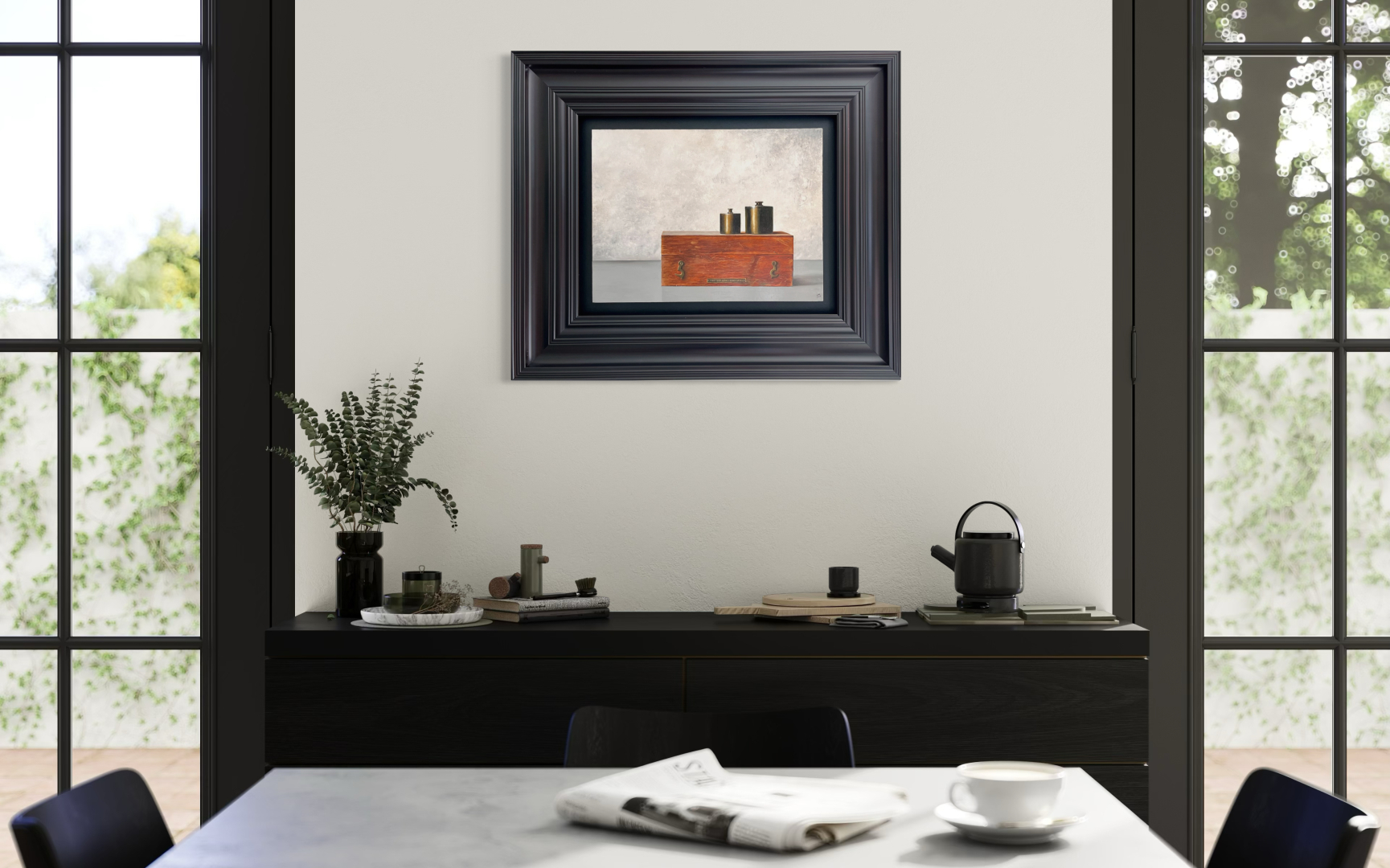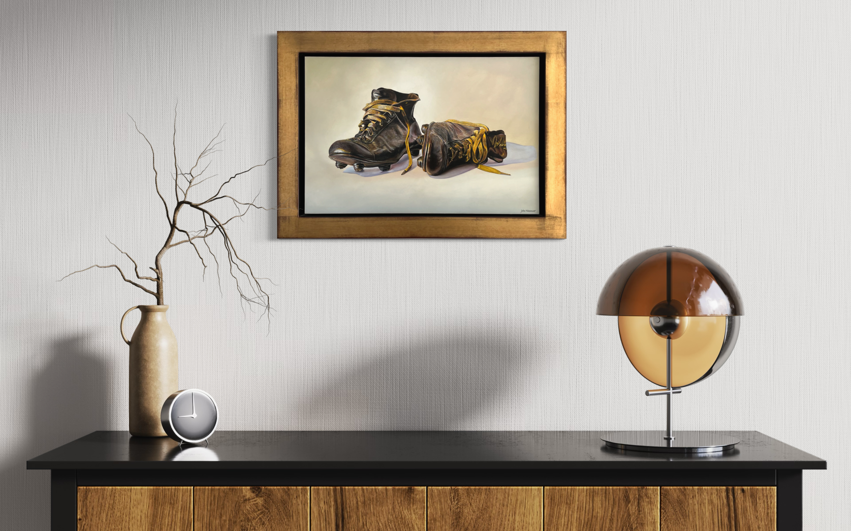 Een schilderij moet in de woonkamer een vaste plek krijgen, niet te prominent misschien, maar het moet ook niet wegvallen.
