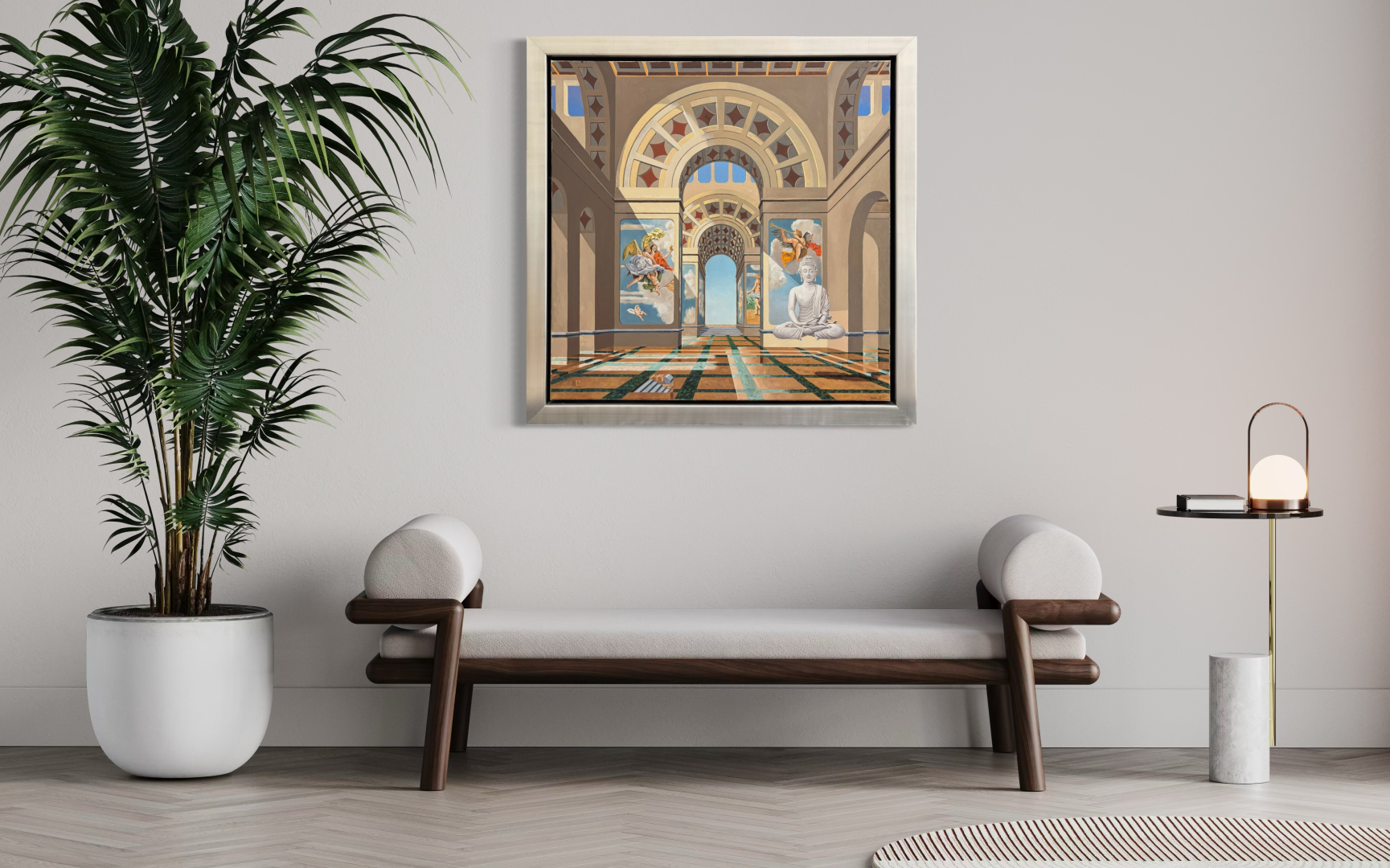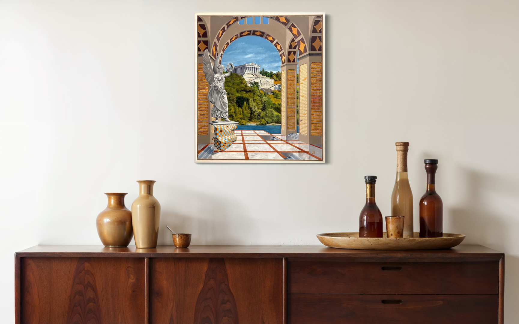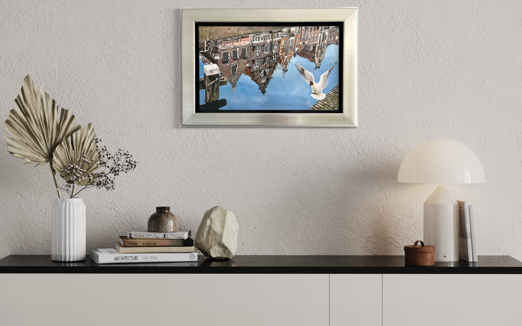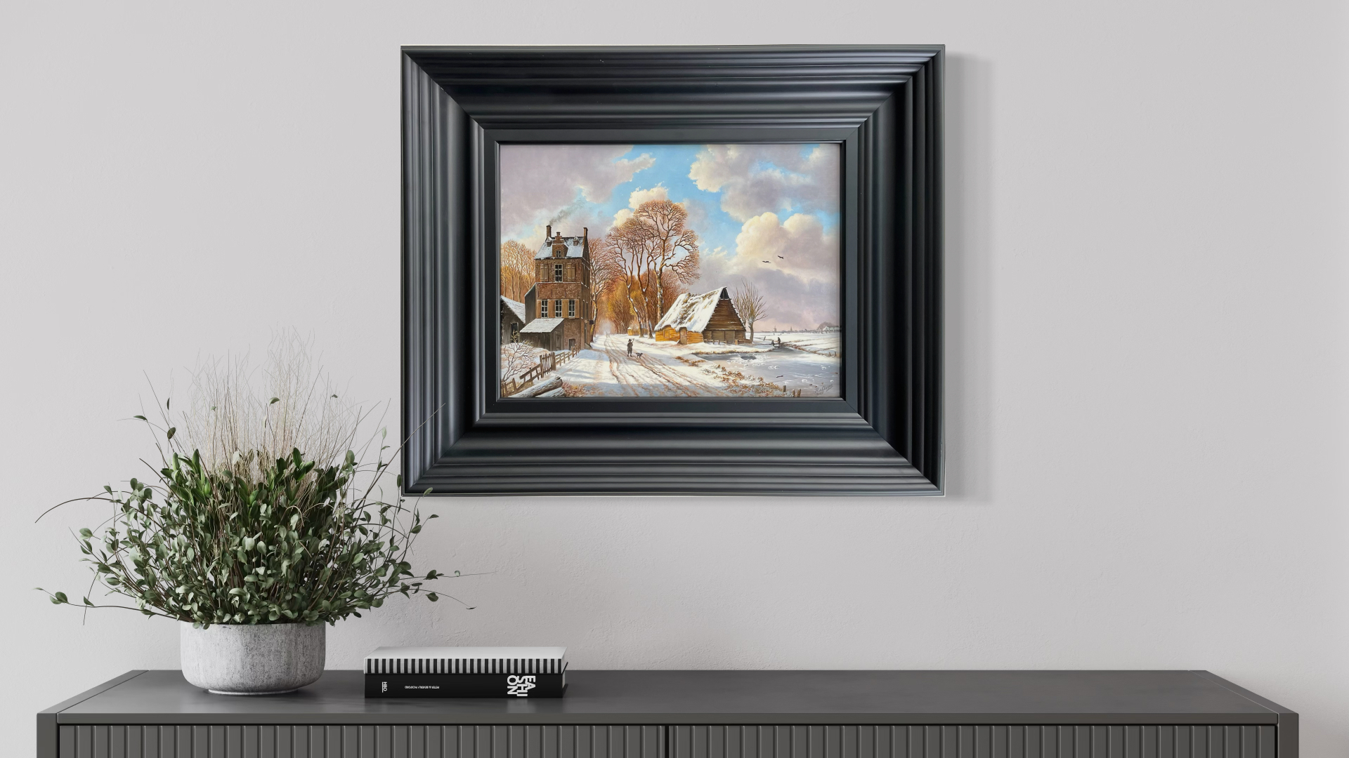 Wij gaan dan met alle plezier voor u aan de slag om een digitale compositie te maken waarin het lijkt of het schilderij al in uw huis hangt. Zo kunt u zich beter voorstellen hoe het kunstwerk bij u thuis uit zal komen. U kunt dan een weloverwogen beslissing maken waardoor u vol vertrouwen tot aankoop van een schilderij kunt overgaan. Kortom: met behulp van deze service krijgt u een realistische indruk van hoe het schilderij in uw woning zou uitkomen.