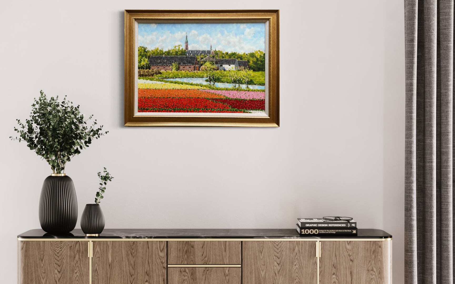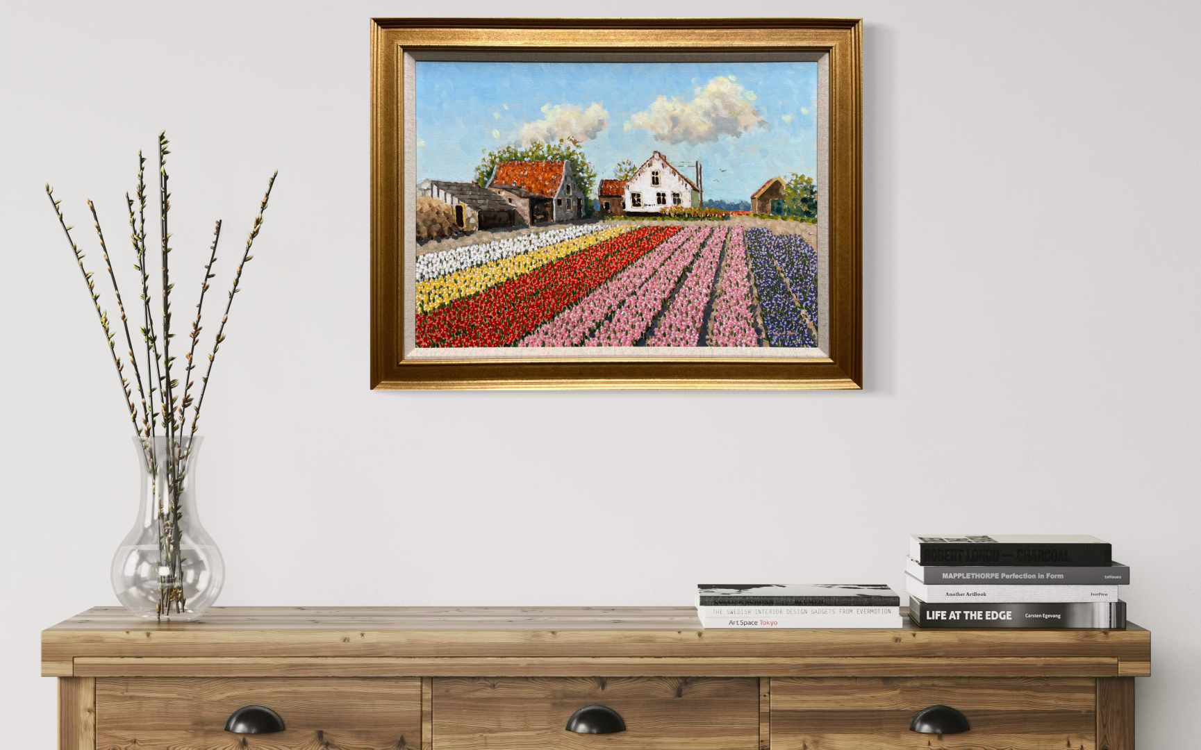 Winter, zomer, herfst, bollenvelden, duinen, bloembollenvelden, ze brengen sfeer en kleur in huis. Denk hierbij aan schilderijen van hedendaagse oude meester Rob van Assen of meesterlijke impressionist Leo van den Ende.