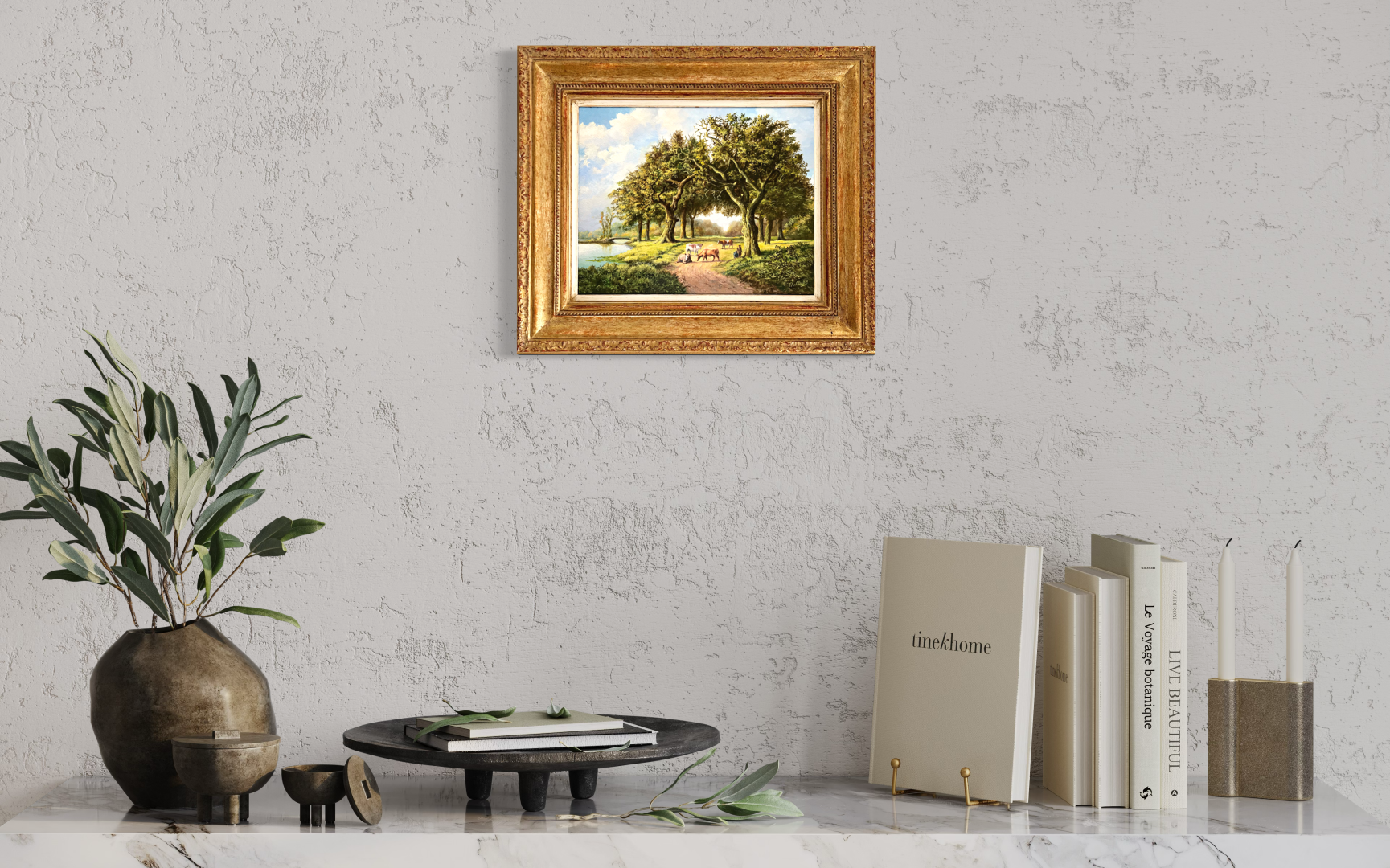 Samen met een passende lijst zal uw schilderij opgenomen worden in uw interieur en een waardevol bezit worden. Met de juiste verlichting wordt het optimaal genieten van het kunstwerk in huis.