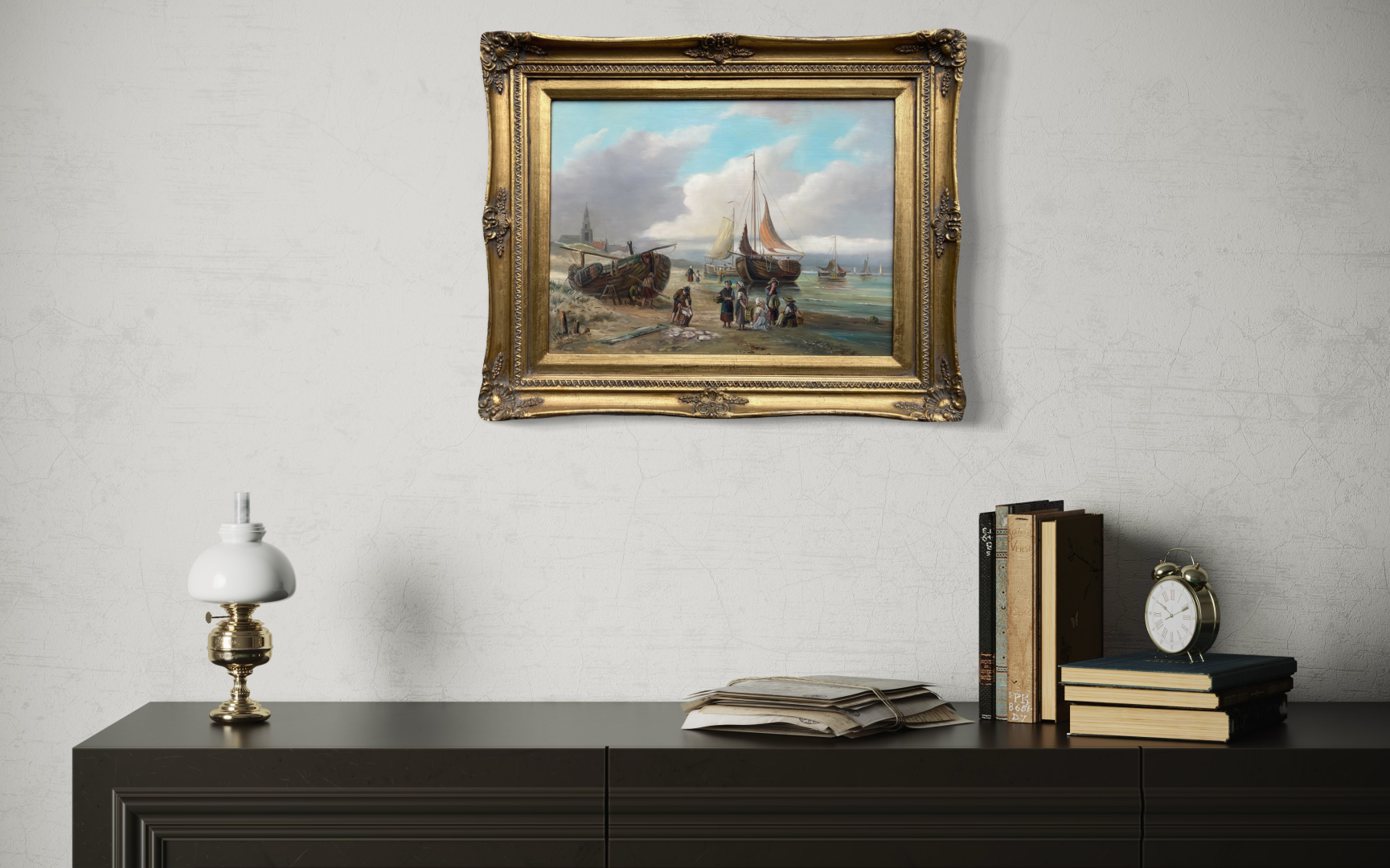Brede luchten werken prachtig boven een bank of dressoir. Een scheepsportret past uitstekend in dit genre evenals nostalgische strandtaferelen van John Haanstra.